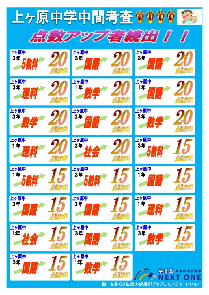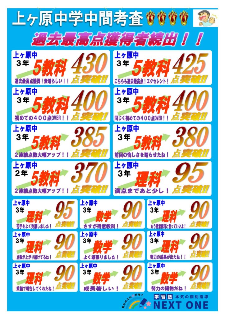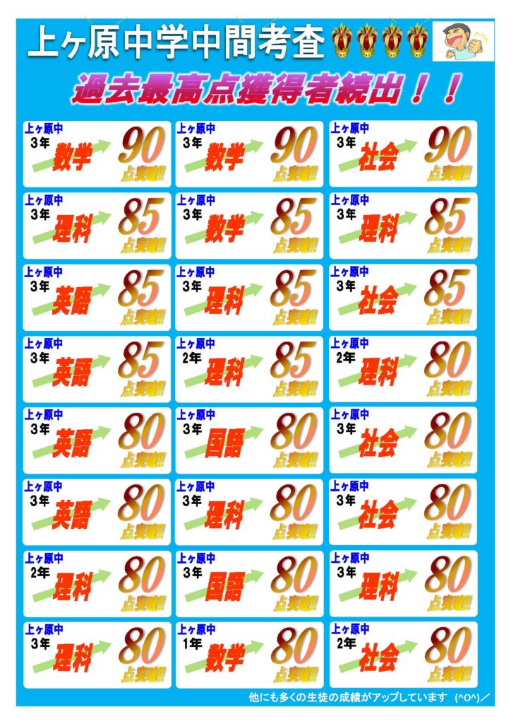 🏆🏆上ヶ原中学校 2学期中間考査結果🏆🏆